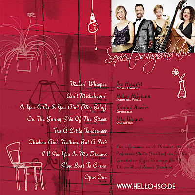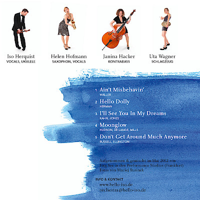 Die erste Scheibe des »Hello Iso Orchestra« – drei fabelhafte Damen und ein gut gelaunter Iso spielen entspannten Swing. Zum swoofen, lindyhoppen – oder einfach zum zuhören.